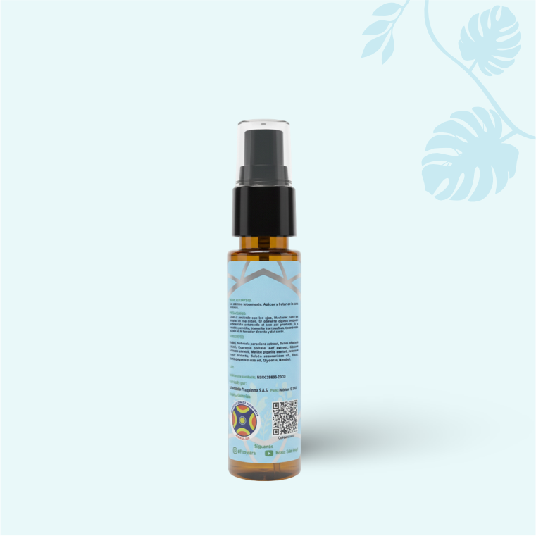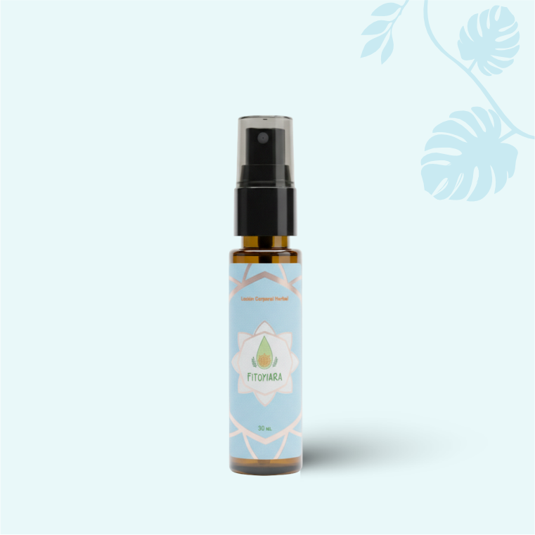 Fitoyara en frasco de 30 mililitros con sistema de spray sencillo. Ideal para llevar en tu bolso o maleta a cualquier sitio, ya que su tamaño práctico permite cargarlo fácilmente.